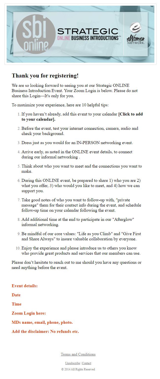 SBI Sequence #4 ONLINE email EVENT CONFIRMATION